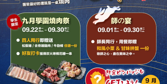 【學生限定|九月學園燒肉祭】9/1~9/30 ➤四人同行 → 即送🎁【 松阪豬/去骨雞腿肉/牛肋 […]