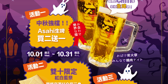 🌕【中秋強檔|暢飲祭】10/1~10/31 月圓人團圓,少不了一杯冰涼的生啤! Asahi生啤 買二送一! 🇹 […]