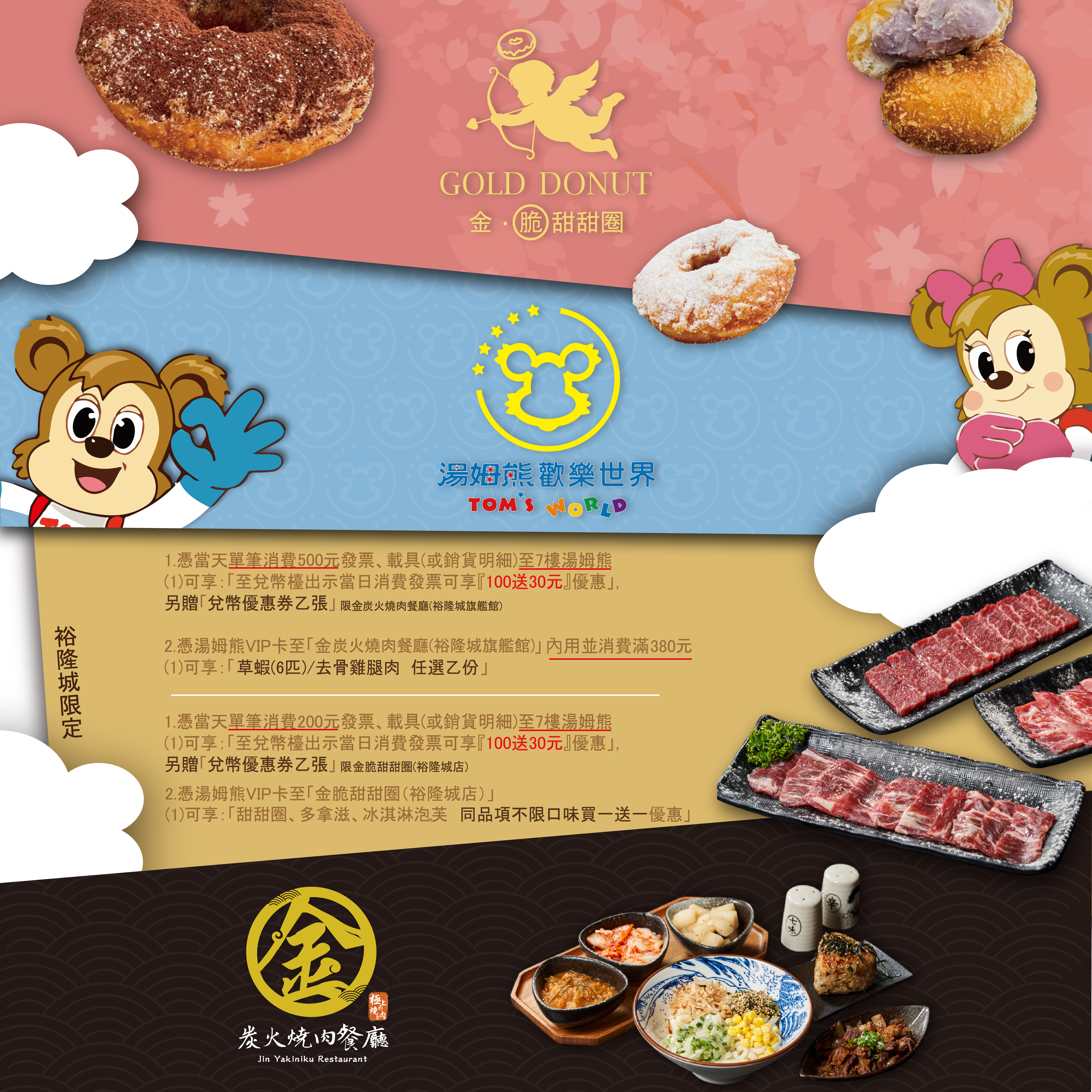 2.憑湯姆熊VIP卡至「金炭火燒肉餐廳(裕隆城旗艦館)」內用並消費滿380元